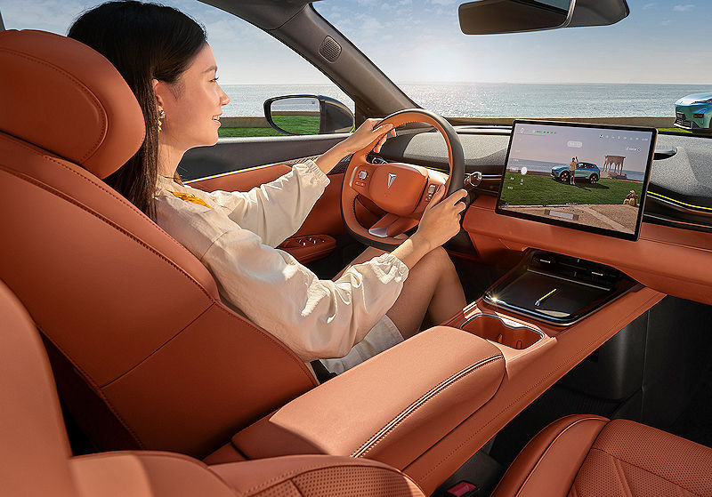 Im Innenraum wird schnell klar, dass Komfort hier nicht nur ein Versprechen ist. Hochwertige Materialien, darunter veganes Leder für Sitze und Lenkrad, schaffen eine angenehme, moderne Atmosphäre, die sich bewusst von klassischem Premiumdenken löst.