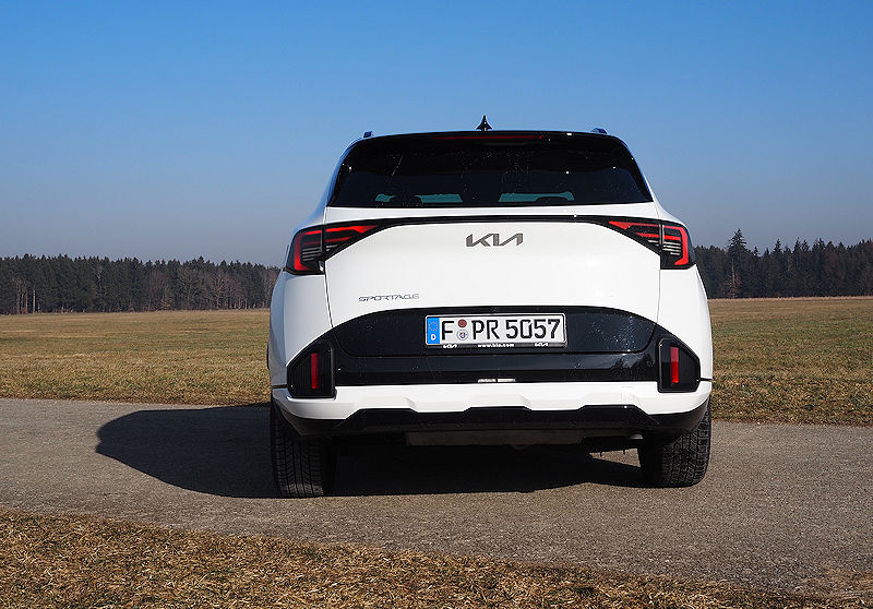 Der Kia Sportage fällt auf und das ganz ohne laut zu sein. Sein Wiedererkennungswert ist hoch, seine Präsenz im Straßenbild klar definiert. Kia schafft hier etwas, das nicht selbstverständlich ist. Spannend ist dabei, wie zurückhaltend sich die Unterschiede zwischen den einzelnen Antriebsvarianten zeigen. Wer ganz genau hinschaut, erkennt den Plug-in-Hybrid an kleinen Details wie einem seitlichen Radarsensor, der zusätzlichen Ladeklappe oder dem dezenten PHEV-Schriftzug am Heck – mehr braucht es nicht, um den elektrifizierten Charakter zu unterstreichen.