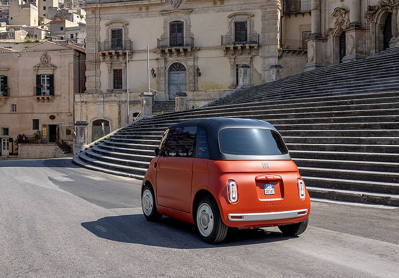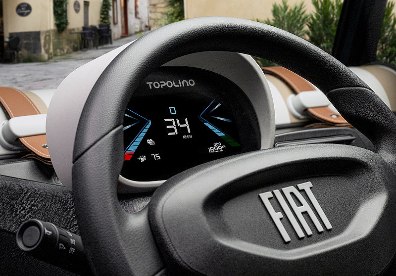 Angetrieben wird der rein elektrische Zweisitzer weiterhin von einem 6-kW-Elektromotor (8,2 PS). Die technisch bedingte Höchstgeschwindigkeit von 45 km/h ermöglicht es, den Topolino bereits ab 15 Jahren mit Führerschein der Klasse AM zu fahren — ein Konzept, das ihn besonders für junge Stadtbewohner attraktiv macht. In der neuen Farbe Corallo ist der vollelektrische Mikro-Flitzer ab 9.990 Euro bestellbar.