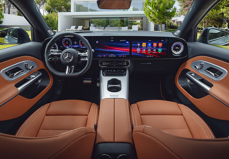 Auch die inneren Werte des neuen GLB legen spürbar zu. In den ersten beiden Reihen genießen die Insassen deutlich mehr Kopf- und Beinfreiheit, während die überarbeitete zweite Sitzreihe jetzt noch mehr Komfort bietet. Zusätzlich schafft der GLB mit dem größten Frunk der aktuellen BEV-Familie – bis zu 127 Liter – praktischen Raum für alles, was im Alltag spontan mit muss, vom Sechserpack bis zum kleinen Zelt.