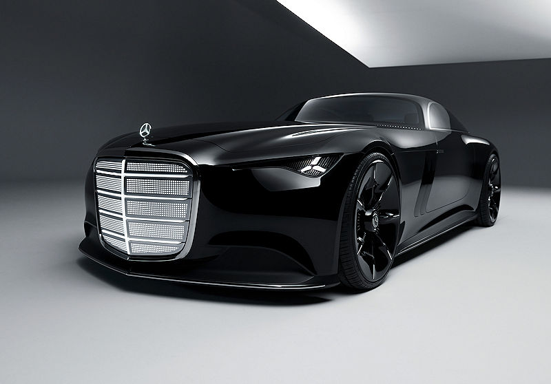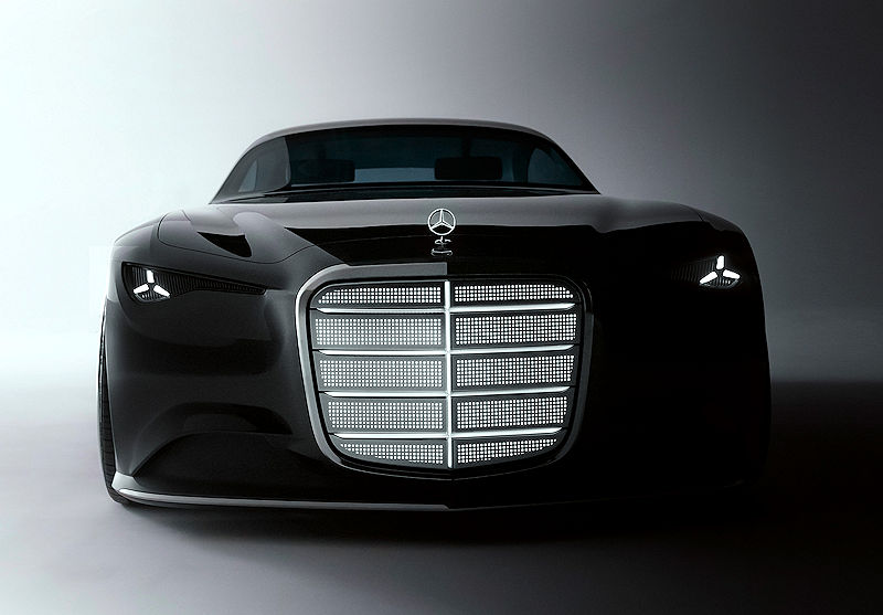 Das neue Markengesicht, erstmals im September 2025 mit dem elektrischen GLC vorgestellt, findet im Vision Iconic seinen Höhepunkt. Mit aufrechtstehendem, beleuchtetem Stern auf der Motorhaube. Die Kombination aus leuchtendem Mercedes-Stern und illuminiertem Chromgrill unterstreicht, wie stark das Thema Licht als emotionales Gestaltungselement ins digitale Design integriert wurde. Ergänzt wird die Front durch schmale, ausdrucksstarke Scheinwerfer mit neuester Lichttechnologie. Die tiefschwarze Hochglanzlackierung lässt die fließenden Formen des Exterieurs zusätzlich skulptural wirken.