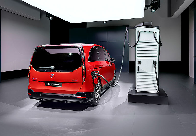 Technisch setzt Mercedes auf eine neue Van-Architektur und kombiniert sie mit allem, was aktuell State of the Art ist: 800-Volt-Technologie, bis zu 300 kW Ladeleistung und eine WLTP-Reichweite von über 700 Kilometern. In der Praxis bedeutet das: In etwa 15 Minuten lassen sich bis zu 355 Kilometer nachladen – also einmal Kaffee holen, weiterfahren.