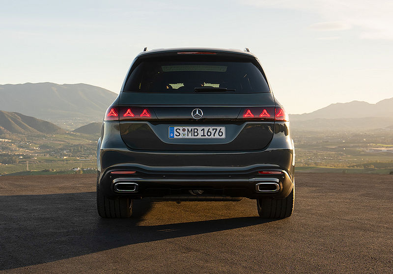 Auch optisch setzt der neue Mercedes GLS ein Statement. Der aufrecht stehende Stern auf der Motorhaube – eine Hommage an die S-Klasse – verleiht ihm eine besondere Präsenz. Dazu kommen ein größerer, markanter Kühlergrill mit beleuchteten Elementen sowie neue Lichtsignaturen, die den GLS sofort als Mercedes-Benz erkennbar machen.