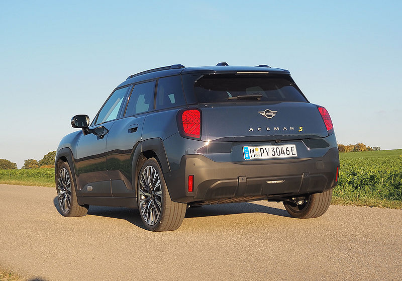 Beim Energieverbrauch pendelt sich der Aceman SE im Alltag zwischen 16 und 17 kWh pro 100 Kilometer ein. Daraus ergeben sich praxisnahe Reichweiten um etwa 350 Kilometer. MINI nennt nach WLTP einen Normverbrauch von 14,0 bis 14,8 kWh/100 km sowie eine maximale Reichweite von bis zu 405 Kilometern. Ein ausgesprochener Langstreckenläufer ist er damit nicht, aber für Pendelstrecken und den urbanen Einsatz absolut passend dimensioniert.