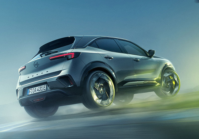 Optisch setzt Opel auf provokante Akzente: Die Front- und Heckschürzen zitieren das Rally‑Vorbild, schwarze oder gelbe GSE‑Schriftzüge und gelbe Bremssättel sorgen für Aufmerksamkeit. Die eigens entwickelten 20‑Zoll‑Felgen mit Michelin Pilot Sport EV‑Reifen geben dem kompakten Crossover den nötigen Stand.