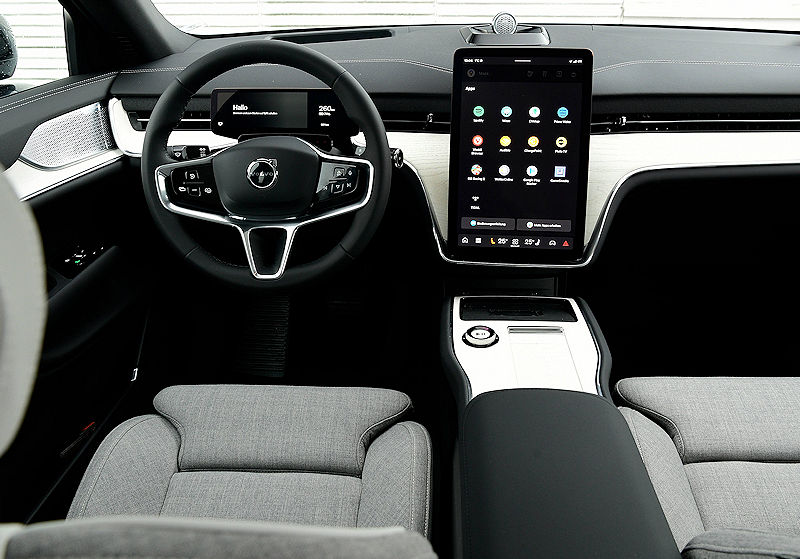 Im Mittelpunkt steht die neue, softwarebasierte Plattform mit leistungsstarken Hochleistungsrechnern und integrierten Google-Diensten wie Assistant, Maps und Play Store. So entsteht ein neues Nutzererlebnis, welches durchaus auch eine Eingewöhnung verlangt. Statt einer Vielzahl einzelner Knöpfe dominiert nun ein sehr reduziertes modernes Bedienkonzept, das den minimalistischen Charakter des Interieurs konsequent fortführt.
